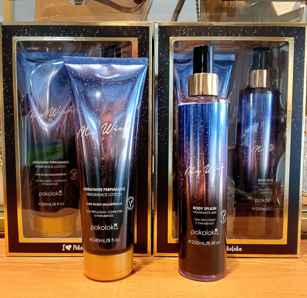 O Kit Pokoloka My Wish é composto por um Hidratante Perfumado e um Body Splash, que juntos oferecem uma experiência de perfumação e hidratação inspirada na fragrância My Way de Giorgio Armani.